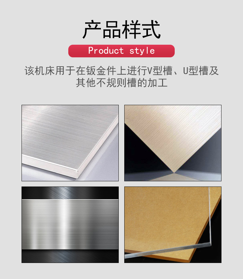 功能使用:该机床用于在钣金件上进行∨型槽、U型槽及其他不规律的加工