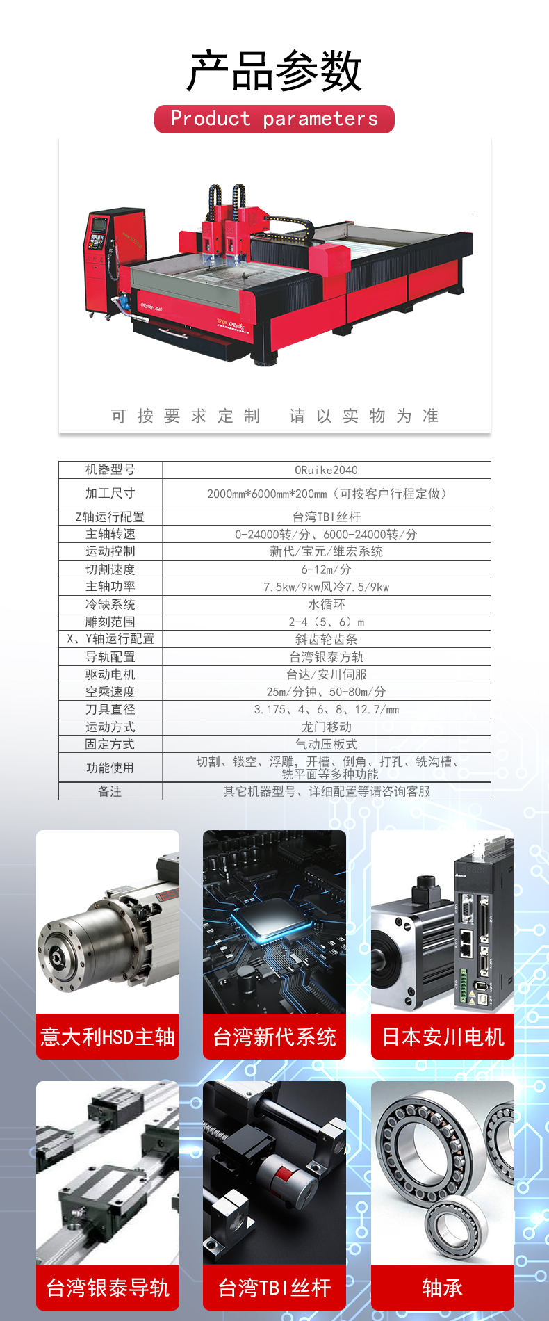 主轴功率:5.5KW/7.5KW/M冷9KW刀主轴9KW 意大利taly HSD9kw(可选optional)