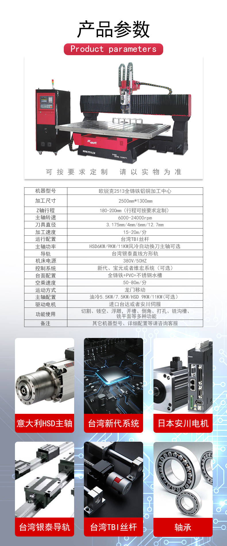 机器型号:欧锐克2513全铸铁铝铜加工中心